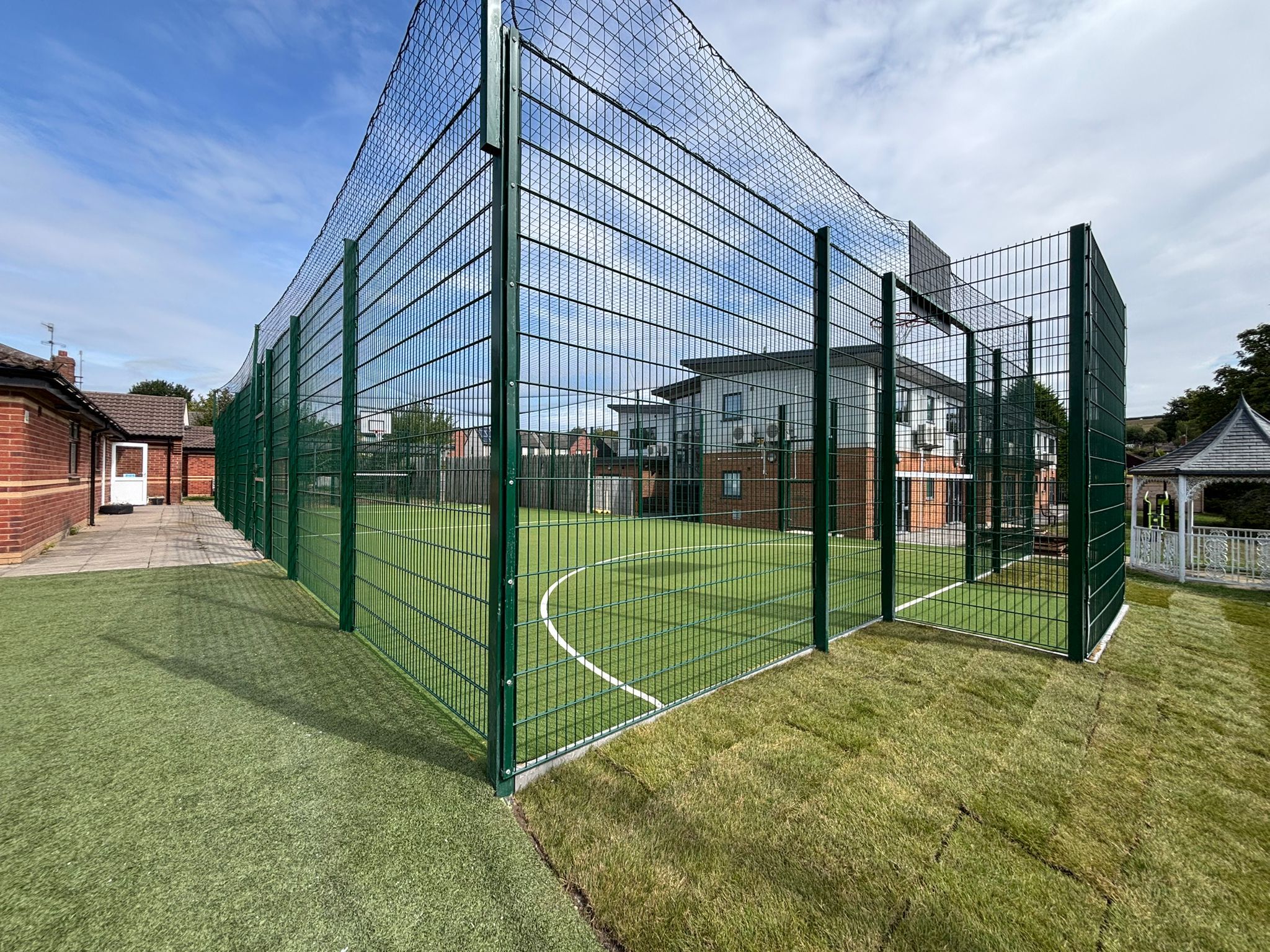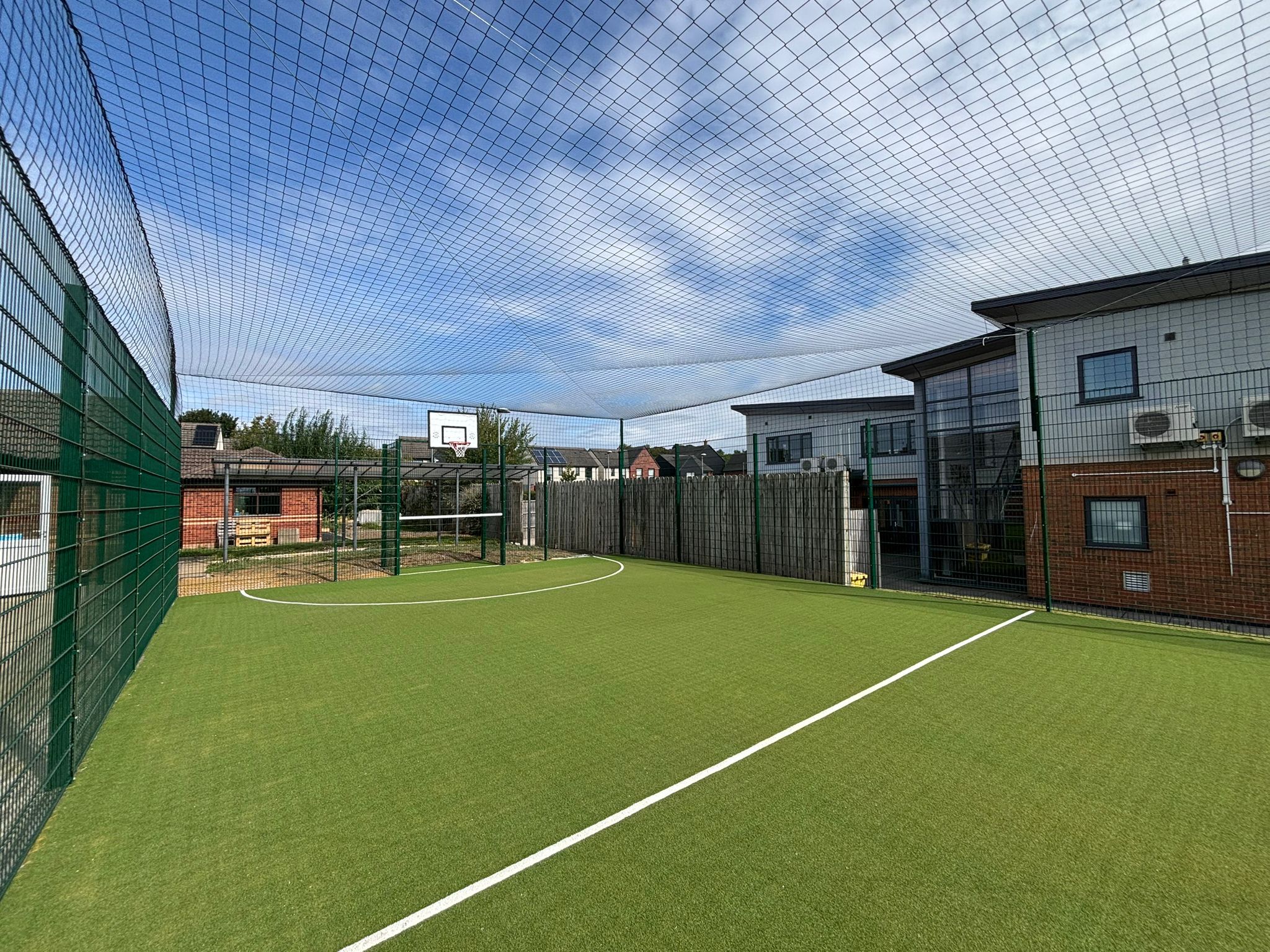 • Netting installed above the pitch to prevent balls from escaping, reducing disruption to nearby areas.
